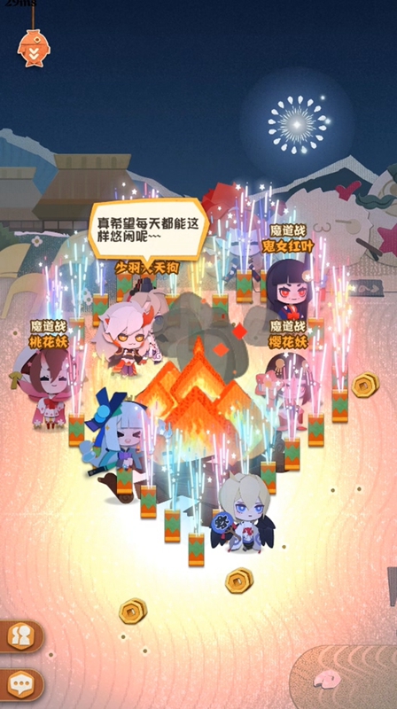 同时游戏还加入了挂机收益功能,现在家主在挂机或离线期间也可以获得源源不断的食材与金币资源等,这个功能对于不能花太多时间上线游戏的上班族和学生党十分友好,每天上线就可以收获资源直接去养成小妖怪或是和它们互动玩耍了。