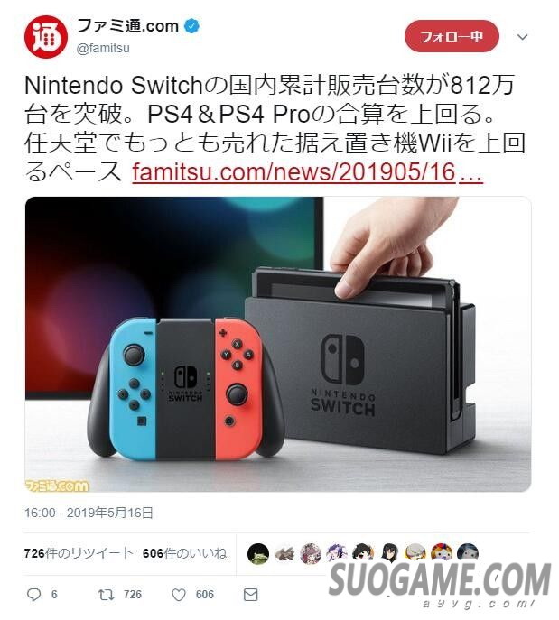 根据FAMI通最新的每周游戏&硬件发售统计,Nintendo Switch在日本国内的累计销量已经达到812万5637台,超过PS4&PS4 Pro的累计销量807万7756台。自2017年3月发售至今已经发售了115周,对比同样发售115周的销量,已经打破Wii当年781.4万台的记录。同期硬件中,PS3是278万台、PS4则是267.7万台(FAMI通数据)。