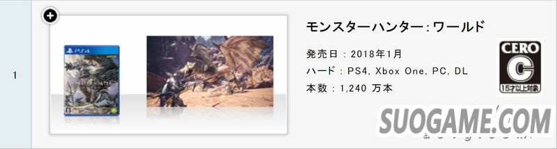 ·《怪物猎人世界》:1240万