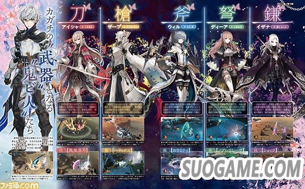 SE旗下Tokyo RPG Factory的新作《鬼哭邦》公开本周Fami通杂志预览,这次将披露与主角一起战斗的5名“鬼ビ人”的造型,他们相当于职业一样的存在,凭依在主角身上可以使之切换使用的武器,分别对应刀、枪、斧、弩、镰。
