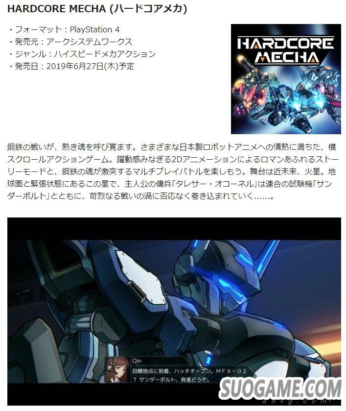 《硬核机甲》日版由亚克系统发行,本次公布PS4日版将于北京时间6月27日发售。
