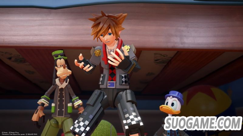 《王国之心》初代于2002年3月登陆PS2平台,之后大部分作品都在掌机平台混迹。时过境迁,PS4相较PS2和各种掌机在机能方面有着飞跃性的提升,《王国之心3》的画面表现力也因此得到了大幅度的强化。美术风格一如既往的保持着超高水平,新加入的迪士尼动画所呈现出丰富多彩的世界让笔者感到震撼。制作组在不同迪士尼世界中大胆采用了不同的画风,例如在《玩具总动员》世界中,制作组将索拉一行人的造型改成了如同可动玩具一般。而在《加勒比海盗》世界中,索拉一行人的画风则偏向写真风格,制作组还为了专门设计了相应的服装来配合对应的世界。这样的改动使得来自其他世界的主角们与其他角色站在一起时显得毫不突兀。