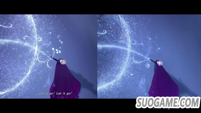 ▲国外网友制作的“Let it go”场景对比,左为《王国之心3》右为《冰雪奇缘》电影