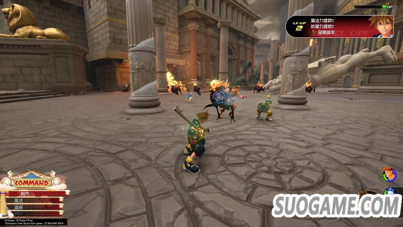 我相信每位玩家初次踏入本作迪士尼世界的第一感受都是:地图太大了吧。本作中全部的世界均只用一张或2-3张大地图构成,随着地图规模的增大,制作组也加入了记录点之间的传送机制,方便玩家快速到达想去的区域。虽说本作依然保留了只能在记录点上才能存档的远古设定,但同时也顺应时代的加入了自动存档的功能,避免了玩家忘记存档丢失进度的情况。
