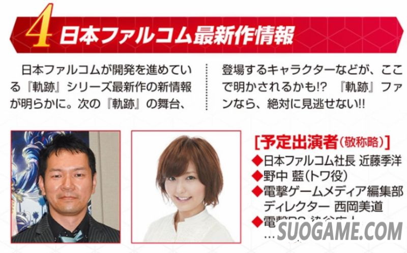 而本月最新一期的电击PS杂志中介绍这个活动会公布《轨迹》系列最新作的情报,其中甚至还会有新作的舞台,登场角色等情报。关于新作此前近藤社长也曾透露过一点内容。