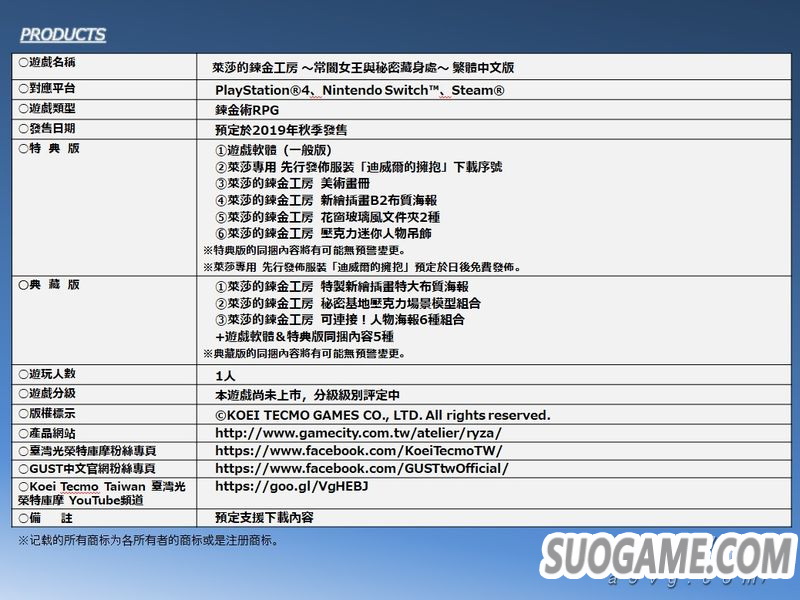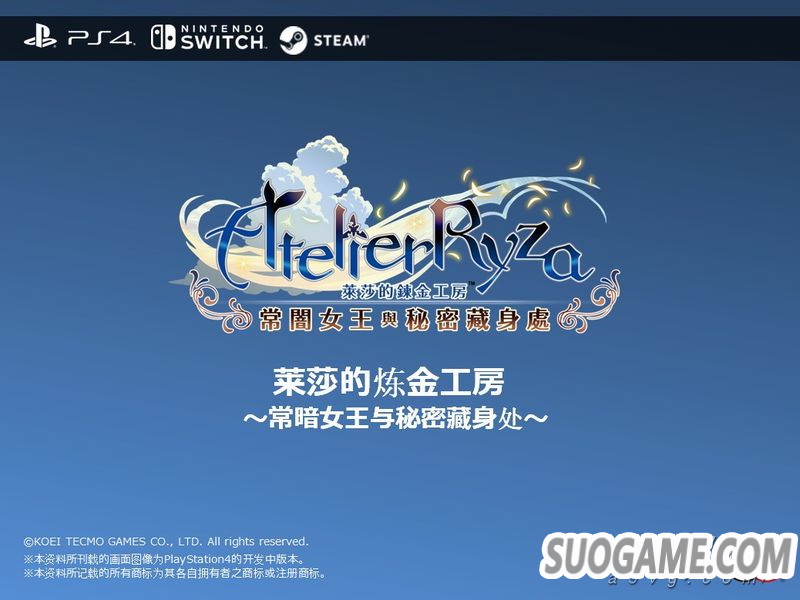 GUST新作PS4/Switch/Steam《莱莎的炼金工房~常暗女王与秘密藏身处~》中文版将于北京时间2019年秋季发售!
