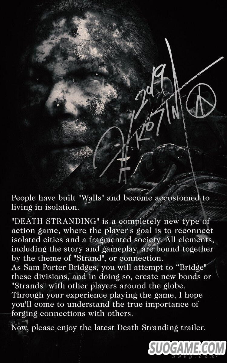 小岛秀夫的新作《死亡搁浅》正式公开一段新的九分钟预告片,其中可以看到一些玩法的演示,同时视频最后公布游戏的发售日期——11月8日,而简体中文版也确定会同步推出,即日开始接受预约。
