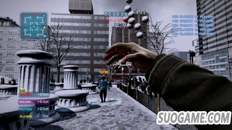 于雪祭会场一角进行的竞技型「打雪仗」。在柱子林立的正方形区域内,最多可四人一起互相丢雪球,在限制时间内得到最多分数的参加者便获得胜利。进行游击战或分散攻击等各种战法迎战吧。