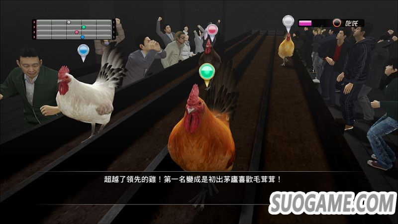在锦荣町某栋老旧大楼一角举办,是个让名古屋「土鸡」竞速的赛跑活动。可自己训练土鸡参赛,以赢得最高峰的比赛优胜为目标。还可以和其他母鸡交配生出继承了能力的土鸡等,畅享培育游戏的乐趣。