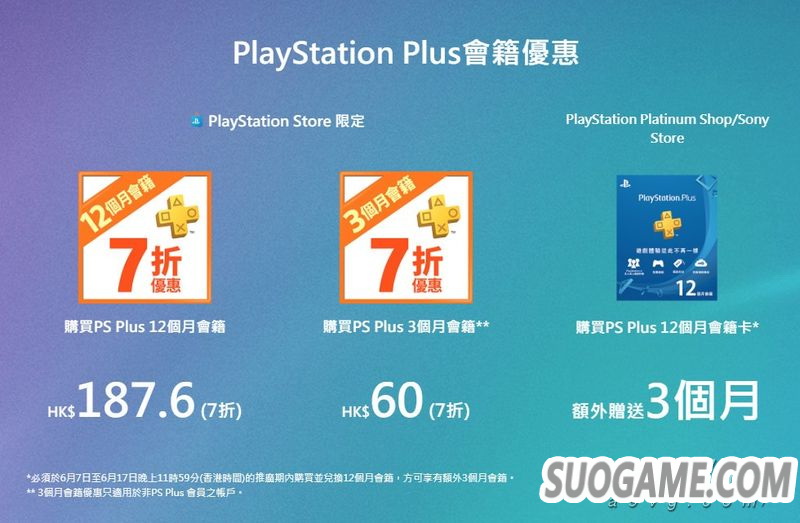 在6月7日-17日期间有“Days of Play”优惠活动,购买PS+会员可以7折优惠,有需要的朋友可以趁机多买点……