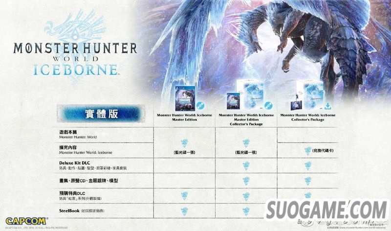自《怪物猎人世界》大型拓展内容《Iceborne》公开以来,各个版本所包含的内容、是否需要重新开荒等与游戏版本相关的疑问一直存在于玩家之间,今日Capcom在官方微博上针对其中的部分问题做出了解答,以下是此次与实体收藏版相关的细节。