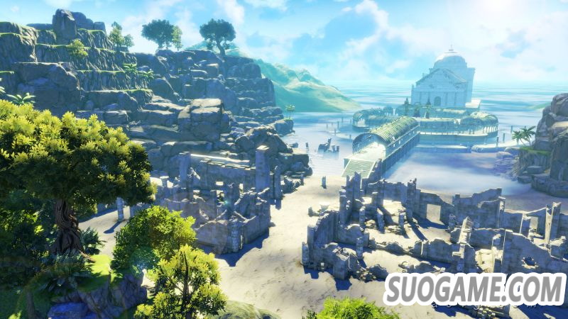 越过遗迹的断垣残壁,港湾中矗立着气度庄严的建筑。光影婆娑的林间。夕阳笼罩着斑驳沧桑的遗迹。若能漫步其间,必将发现全新的冒险。