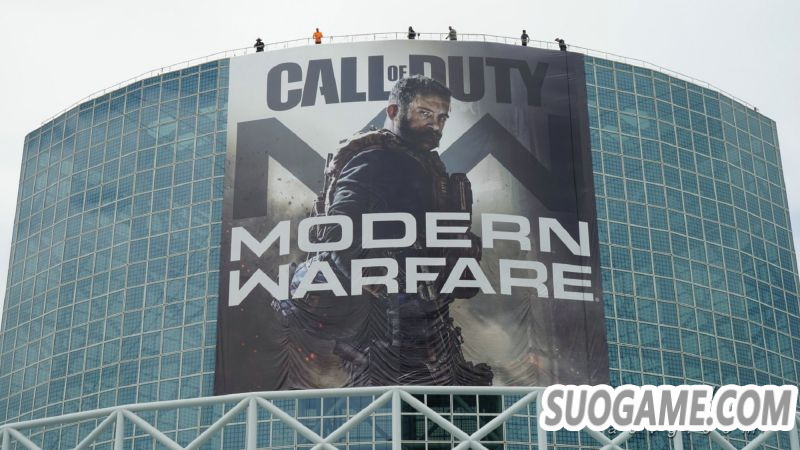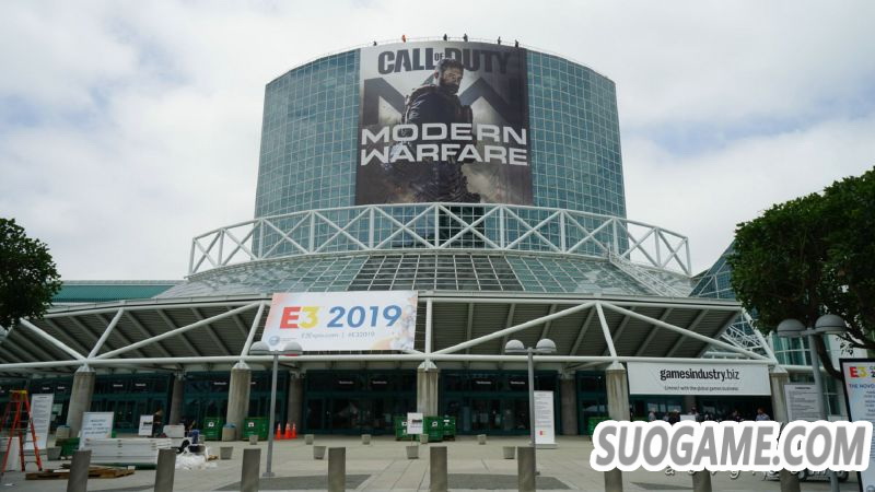 来到洛杉矶会展中心的南馆正门,这里近年来悬挂的广告不是COD就是战地,今年也不例外,可以看见《使命召唤 现代战争》占据了黄金广告位。