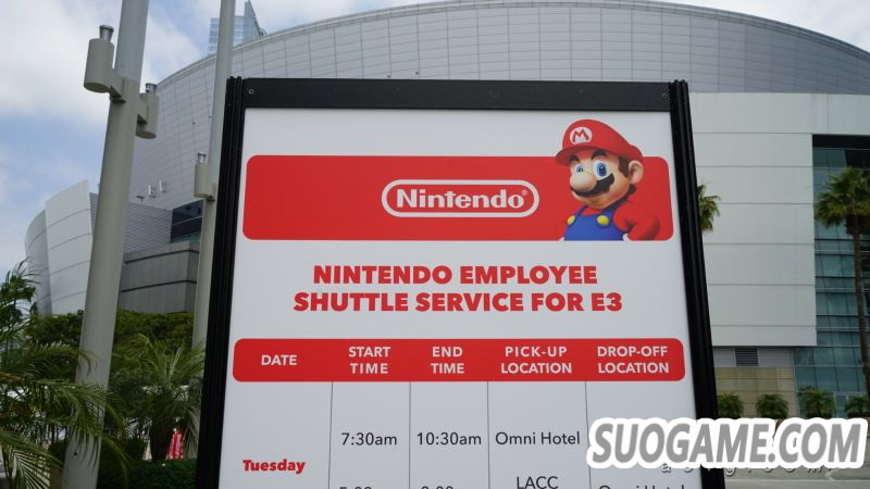 从南馆出来向西馆前行,在西馆门口可以看到任天堂员工的班车停车点,估计本次任天堂展位的雇员数量应该不会少。
