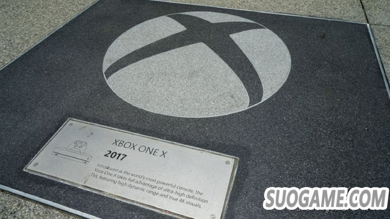 广场之中新加入的元素让我们眼前一亮,这里像好莱坞星光大道一样通过地砖展示了属于Xbox的一些大事件,包含Kinect发售年份、Xbox One/Xbox One X发售年份、第一位达到100万成就的玩家、Xbox Game Pass推出的年份,而令人在意的是,这些砖块的尽头还有两块砖只有Xbox的图案而没有下方的文字,不知是否是为了即将公布的下一代Xbox主机而预留的位置。