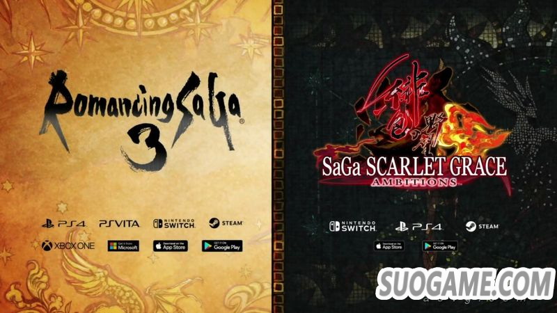 在日本已经推出的《浪漫沙迦3》与《沙迦 绯色天恩 绯红的野望》将推出美版。《浪漫沙迦3》对应平台PS4/PSVita/Switch/PC/Xbox One/iOS/Android,《沙迦 绯色天恩 绯红的野望》对应平台PS4/Switch/PC/iOS/Android。