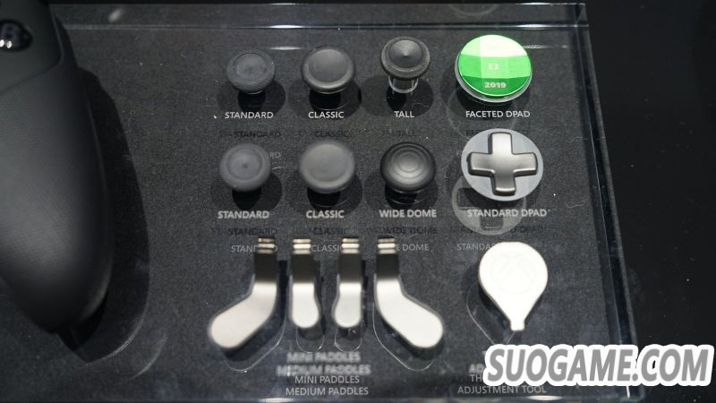 在2019 E3上,Xbox精英无线手柄2代正式公布,该手柄将支持30余种不同的新功能,包括对摇杆阻力的调整、全包围防滑握把、更精短的扳机锁、新的可互换配件、对Xbox App的无限制定制以及续航时间超过40小时的可充电电池。Xbox精英无线手柄2代将要在2019年11月4日在全球24个市场同步上市,售价179.99美元。下面是前方记者拍到的实物图: