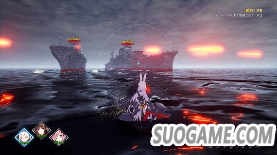 R1/R2:攻击,分别对应两种类的武器,部分角色R2为鱼雷。当角色为航空母舰时能够使用各种飞机。