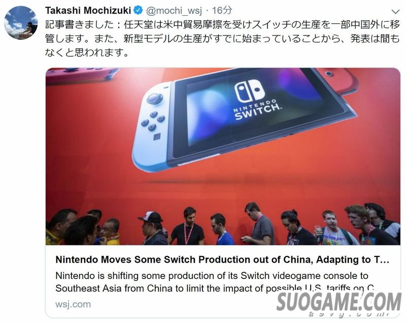 华尔街日报的记者望月崇在一则最新的报道中表示任天堂将一部分Switch主机的生产工作从中国开始转向东南亚地区。另外他还表示新型号的主机已经在开始生产了,估计不久之后就会发表。