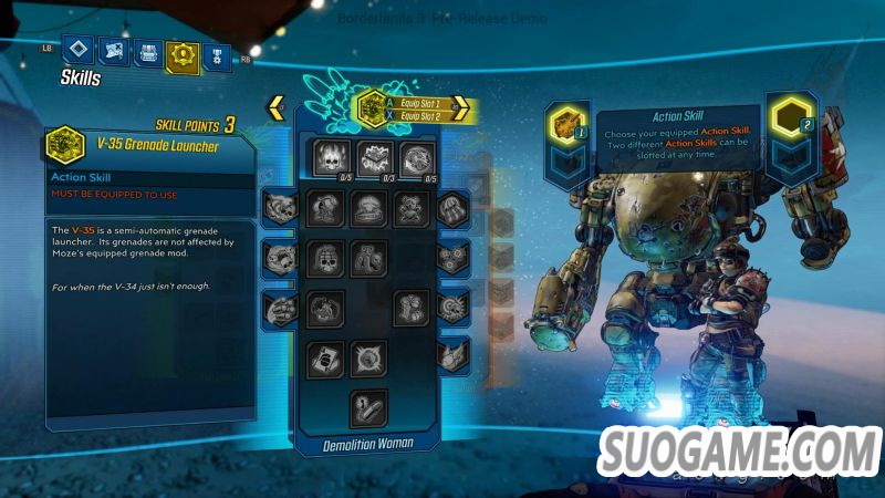 IGN公开了一段《无主之地3》“枪手”莫泽的实机演示,可以看到这名角色的技能可以召唤之前预告中出现的巨型机甲,通过不同的加点为机甲的双臂配备不同的武器。演示最后则是一场全新的Boss战。