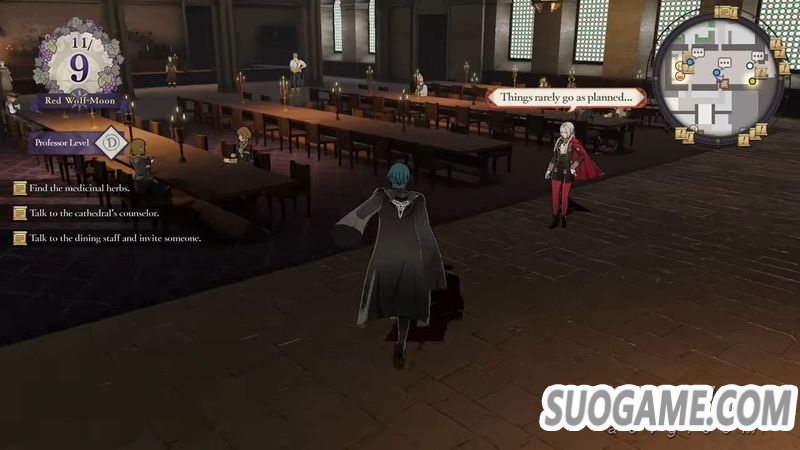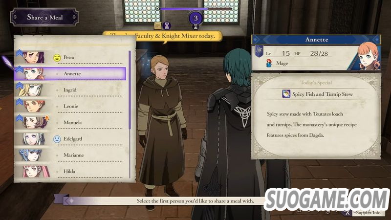 · 周末可以以第三人称视角在修道院(据点)中自由行动,有行动点数限制,执行某些行动会消耗此点数,比如邀请人吃饭之类的。需要消耗点数的行动会有提示。