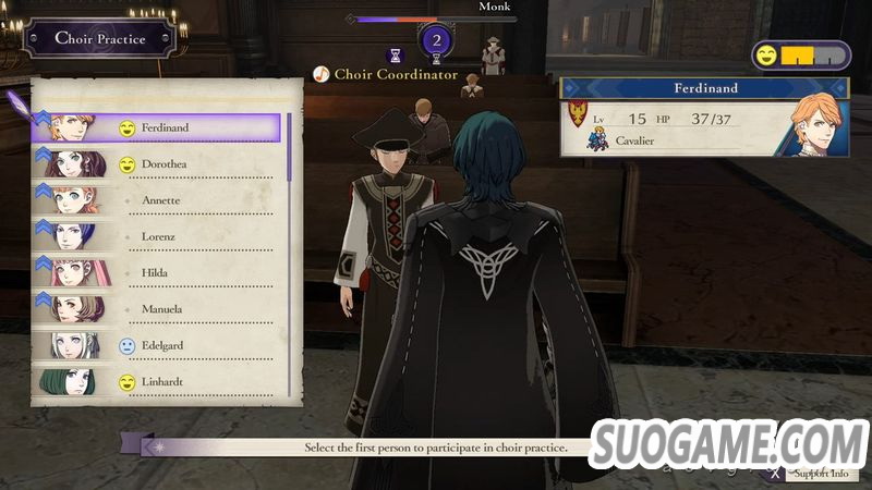 · 大教堂可以邀请两名我方角色一起参加唱诗班,同样也有相性。参加唱诗班可以提高角色之间的好感度、相关武器熟练度(法术)等。