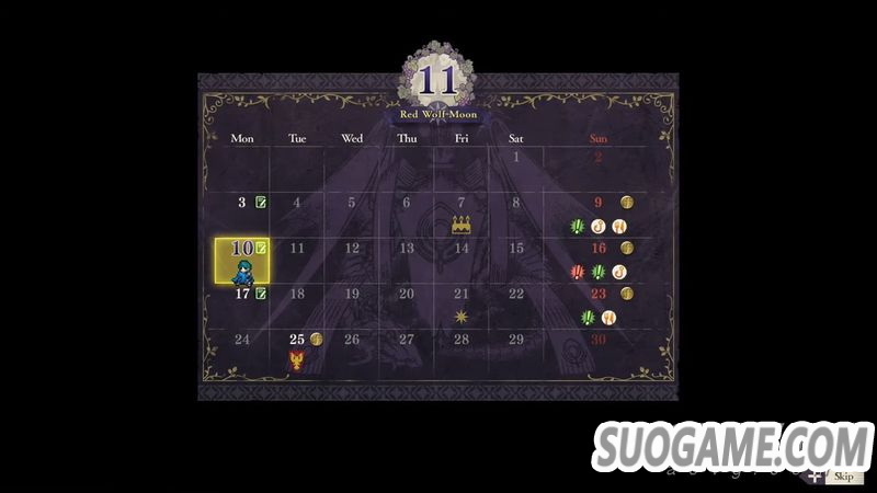 · 日历表可以看到各个时间点能做的事情,以方便玩家规划。也可以直接选择某一天跳过当前时间。