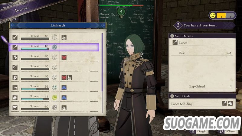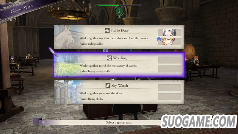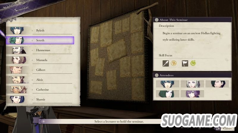 讲习:邀请其他教员或骑士团成员来授课,每名讲师能带的学生都不同,听课的主角及学生可提升职业或武器技能经验。会消耗周末一天时间。