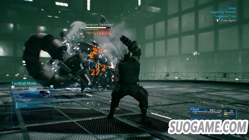 · 在解决了几波杂兵和拿了一两个宝箱之后,来到最底层就会进入剧情部分,之后第一个小BOSS蝎子守卫就登场了。它的弱点是雷属性魔法,和原版一致。