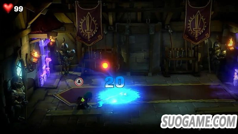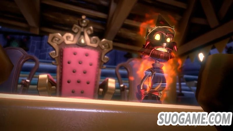 因为A9特派员在前半程花费的时间较少,因此在十分钟的试玩过程中比上方视频多玩到了BOSS战相关的内容,该关卡的BOSS是一位身穿铠甲的幽灵骑士,战斗场景也类似角斗场。我们需要在BOSS举起长枪向我们冲刺攻击的时候用手电筒照他,然后朝他暴露出破绽的胸口射出马桶搋子并用吸尘器猛摔他。受到一次攻击之后,敌人的移动速度会变快,同时场地的机关门也会有暗箭放出,攻击到他两次之后他胯下的马会被摧毁,然后本体会手持剑盾向你发起旋转攻击。因为时间关系,该阶段的BOSS我们没能成功击败便结束了。