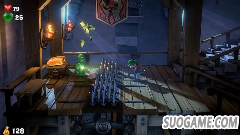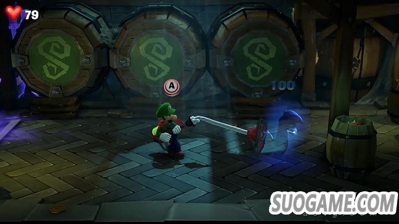 和NGC与3DS时代的前两部作品相比,《路易吉洋馆3》在游戏玩法方面基本一致,战斗方面的基本思路是用手电筒照射幽灵,然后用吸尘器将他们的血量吸到0为止。不过本作新加入了这几种动作:
