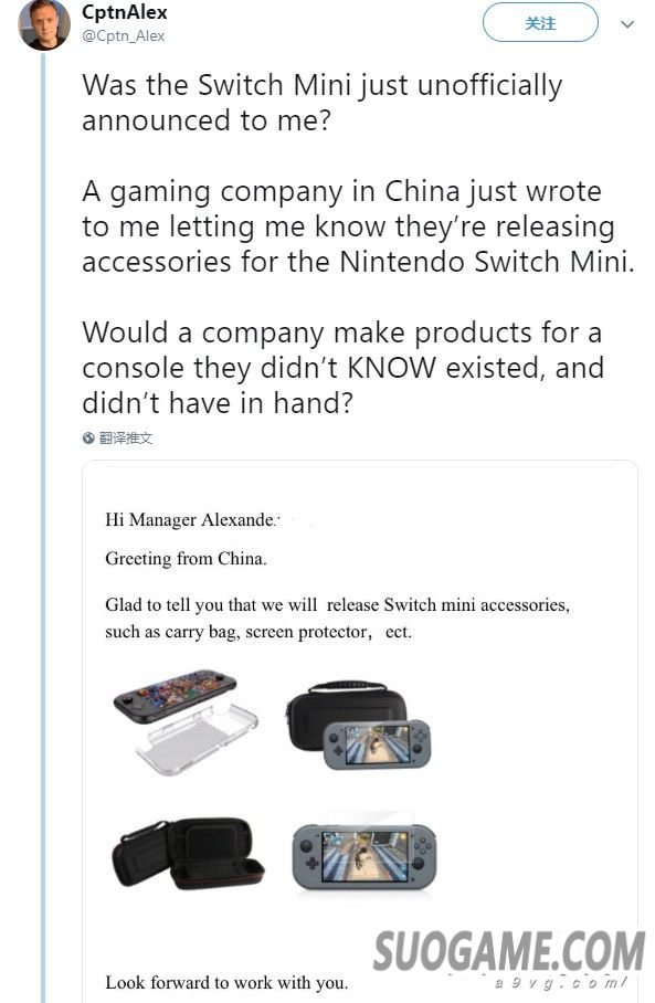近日Wicked Cool Toys的太平洋地区代理CptnAlex爆料,他收到了一封来自中国厂商HonSon的邮件,后者表示自己正在生产Switch Mini的相关配件,包括收纳包、保护膜、外壳等等,甚至公布了一组主机的实物图。这份爆料的真实性还有待验证,不过此前日经新闻曾在4月的一篇分析文章里表示,小型廉价版的Switch会在今年秋季推出。
