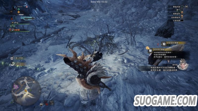 冰豺狼是类似凶豺龙、猫蜥龙一类的新地图生物,在此前并没有过针对性的介绍,不同于凶豺龙等,冰豺狼有特殊的束缚攻击。