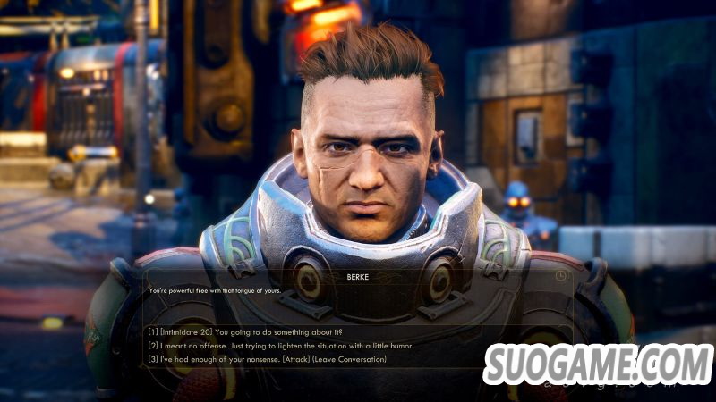 本次演示的内容均为实机画面,其中的任务发生在游戏中期阶段,我们位于Monarch星球中一个名为Fallbrick的小镇,在演示中一开始我们需要让生意所有者相信我们值得信赖才能接到任务,当然你也可以选择威胁要打她,而我们接到的任务则是要和她竞争对手的工厂打交道。