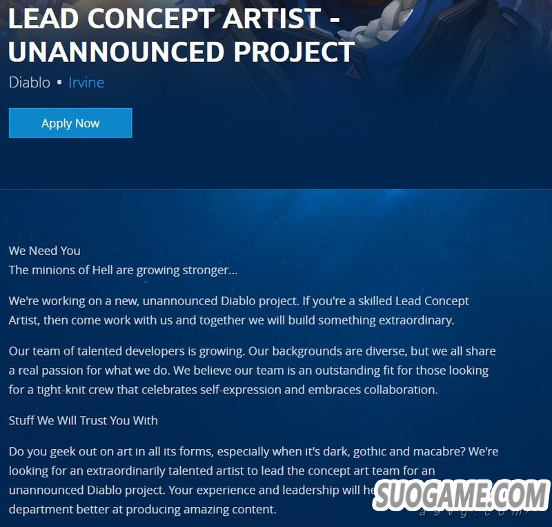 暴雪最近在他们的官网上放出了9则招聘启事,包含执行制作人、首席角色艺术师、首席概念艺术师等等。在职位简介中明确表示本次是针对尚未正式公布的《暗黑破坏神》项目进行的招聘,同时需要对这个系列的背景设定具有了解。