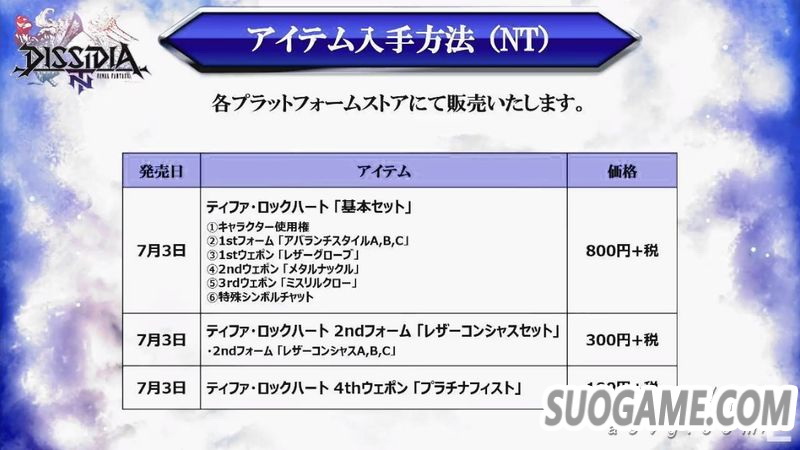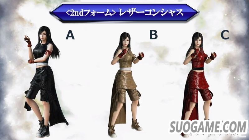 人物DLC将要在7月3日推出基础套装,第二套服装与第四种武器的DLC,基础套装将包含蒂法人物使用权,初始服装(三种颜色),三种武器外观,港服商城售价为48港币。第二套服装来自CG电影《最终幻想7 降临之子》,同样包含三种颜色,售价为28港币。第四种武器外观售价为8港币。
