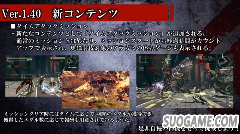 《噬神者3》在今晚的直播节目中公布PS4/PC版1.40版免费升级将于北京时间6月28日10-14点左右推出,主要内容包含新的计时挑战任务、新服装、武器平衡性参数调整等。