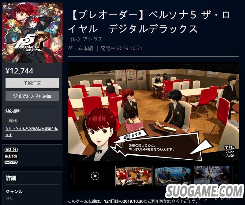 Atlus预定于10月31日发售日版的PS4游戏《女神异闻录5 皇家版》在日服PS商店推出数字豪华版的预购。