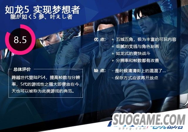 A9VG为《如龙5 实现梦想者》评分:8.5/10,完整评分如下: