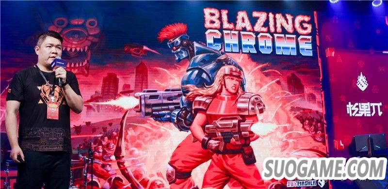 另外,吴立先生还宣布CE-Asia将与法国DotEmu公司联合发行致敬《魂斗罗》的复古像素风横版射击游戏《Blazing Chrome 炽热合金》,这款游戏7月11日就将面市。