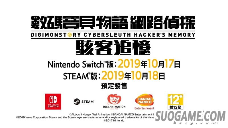 台湾万代南梦宫娱乐今日宣布,《数码宝贝物语 网路侦探 骇客追忆》繁体中文版Nintendo Switch?版预定将于北京时间2019年10月17日、STEAM?版2019年10月18日发售,为《数码宝贝》系列游戏首次登上Nintendo Switch?、STEAM?双平台,繁体中文版第一支宣传影片亦同步登场。