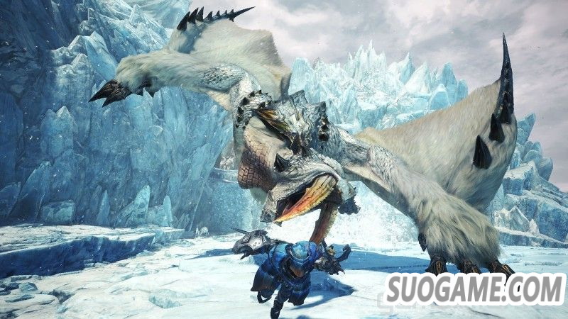 冰牙龙(ベリオロス)是栖息于永霜冻土的飞龙种怪物,因配合自身捕猎和生存环境的需要,其全身皆由白色鳞甲和毛皮所覆盖,冰牙龙比较出名的便是从其口中生长而出的两颗长牙,使其形似剑齿虎一般,为适应在湿滑的冰面上灵活行动,冰牙龙的翅膀和尾部皆生长着形如铁钉一样的鳞片,在移动式通过这些鳞片冰牙龙便不会出现因周围环境导致身体失去平衡的状况,同样因其华丽的形态和纯白的体色,也被猎人工会冠以“冰原的白骑士”之称。