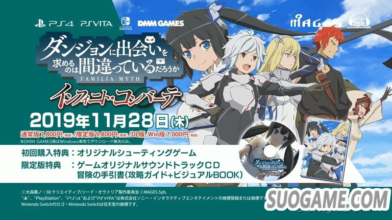Game Source Entertainment (GSE) 宣布, 将于北京时间亚洲区代理 由 株式会社 MAGES.发行 及 5pb.开发,知名电视动画『在地下城寻求邂逅是否搞错了什么』改编的探索地下城类动作RPG游戏『在地下城寻求邂逅是否搞错了什么 无限?战斗』。并公布发售日期及新增发售平台,并将同步发售对应繁体中文、简体中文、英文的亚洲版。