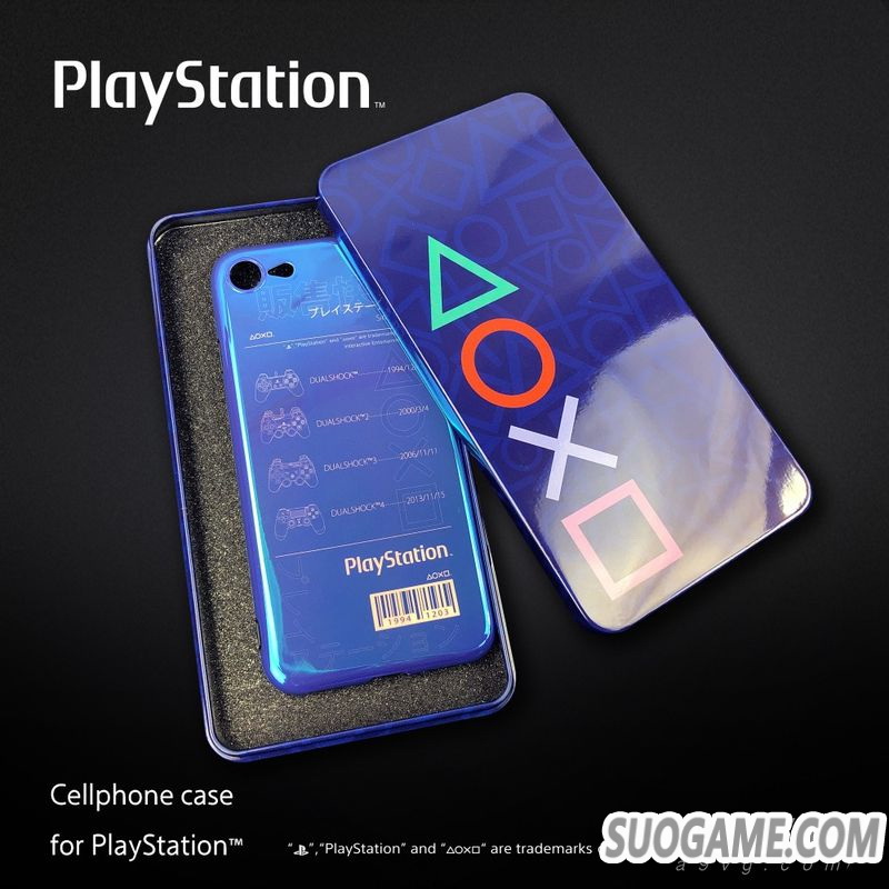 以PlayStation?传统的蓝色作为主色的TPU手机保护壳,具有经典PlayStation?的元素,保护壳印上第一代DUALSHOCK有线控制器至DUALSHOCK 4无线控制器及发售日期。条形码亦特别印上第一代PlayStation?的正式发售的日期 1994 12 03