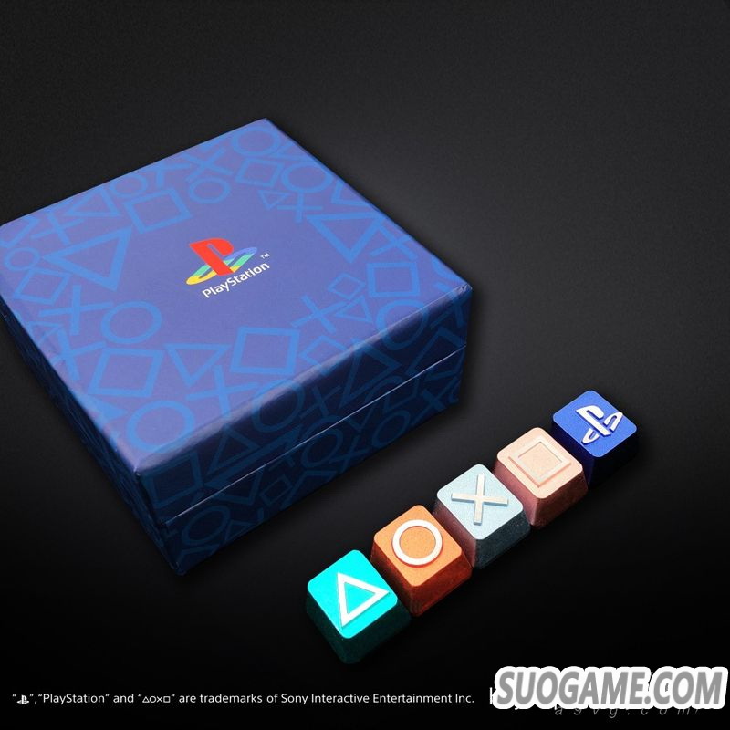 封面以彩色印上第一代PS Logo的精美包装盒,收藏着5枚以铝合金刻度的键盘按钮,以不同颜色的底色衬配白色标志,专供Cherry MX系列的机械键盘使用。5枚按钮分别是蓝色底的PS Logo、靛蓝色底色的三角形、粉红色底的正方形、浅蓝色的交叉形 以及红色底的圆形,其具收藏价值。PlayStation?主题铝合金键盘用按钮套装定价HK$498,将于北京时间8月15日上市,数量有限,售完即止。