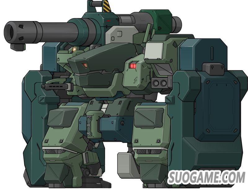 以重型加农炮为核心的机体,牺牲移动速度换取了防御力,装备着厚重的装甲与盾牌。