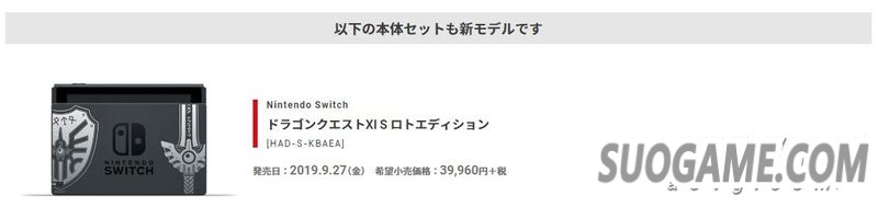 9月27日发售的《勇者斗恶龙11S》限定机同时确认为本次的新型机器,限定机价格为39960日元+税。