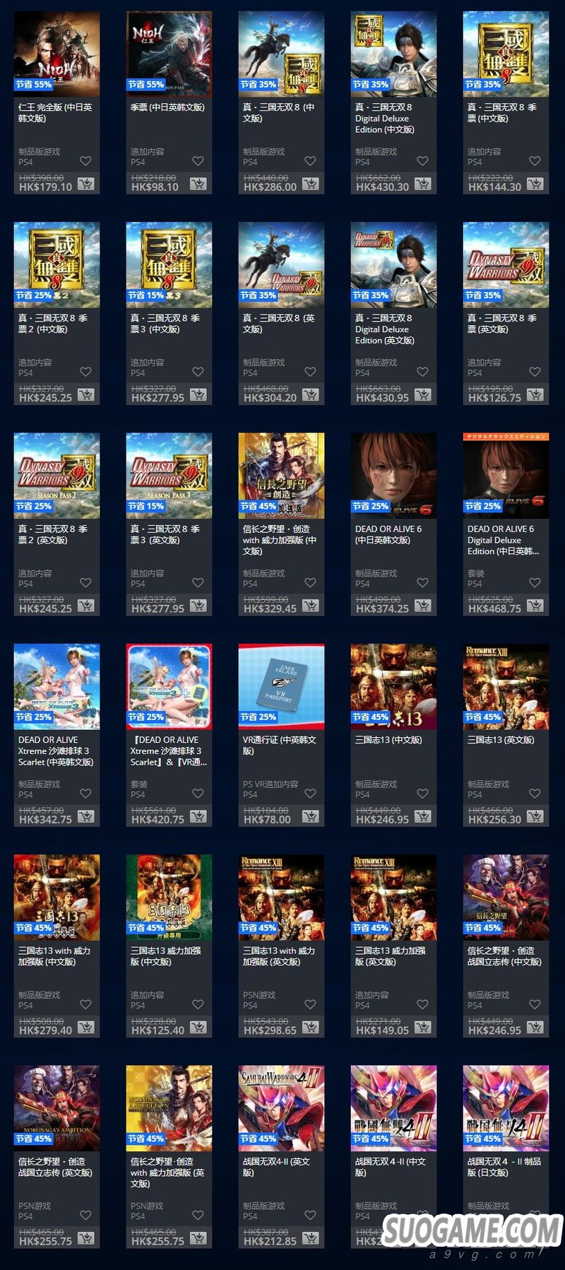 港服PS商店举办“光荣特库摩 庆生大促”。《真三国无双》系列、《三国志》系列、《战国无双》系列、《工作室》系列、《死或生》系列等73个游戏内容低至4折(非PS+会员低至45折)。