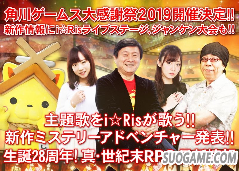 角川游戏社长安田善巳宣布将于北京时间北京时间2019年10月19日14:00至18:00举办“角川游戏大感谢祭2019”,届时将有知名组合i☆Ris演唱主题曲,并公布神秘悬疑冒险作品和诞生28周年的真?世纪末RPG的最新情报。活动地点位于日本教育会馆,将于北京时间北京时间2019年8月1日中午11时至8月30日18时进行报名,前1000名报名者可免费入场。报名地址