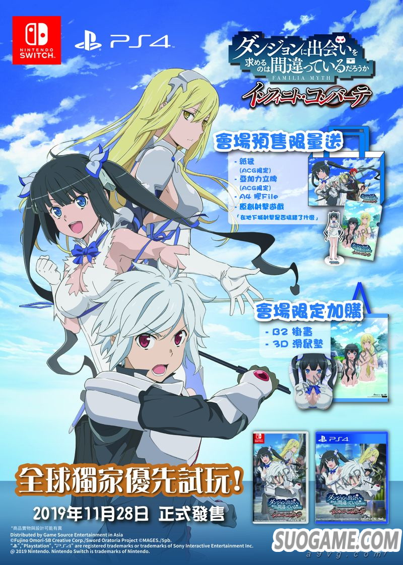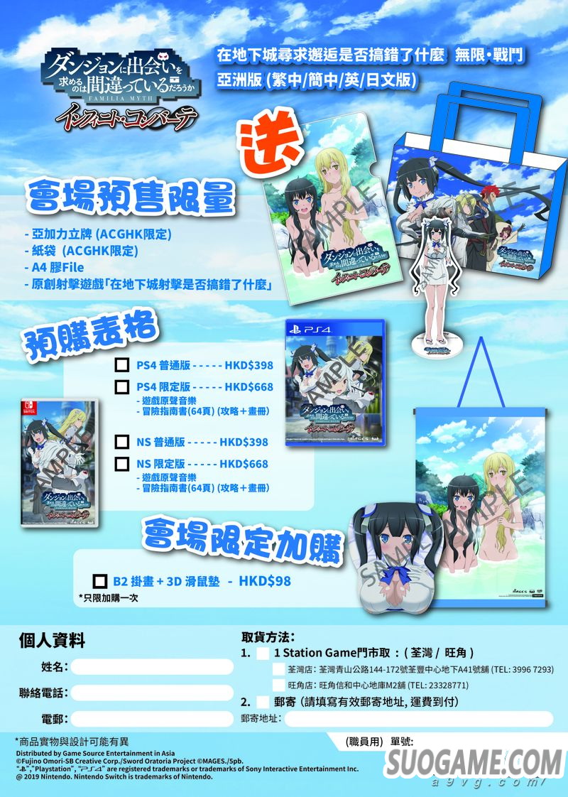 Game Source Entertainment (GSE) 宣布,在动漫电玩节2019(ACGHK 2019)期间与《顽童族》合作,为预定于2019年11月28日发售的《在地下城寻求邂逅是否搞错了甚么 无限?战斗》推出一系列的会场限定预购优惠。